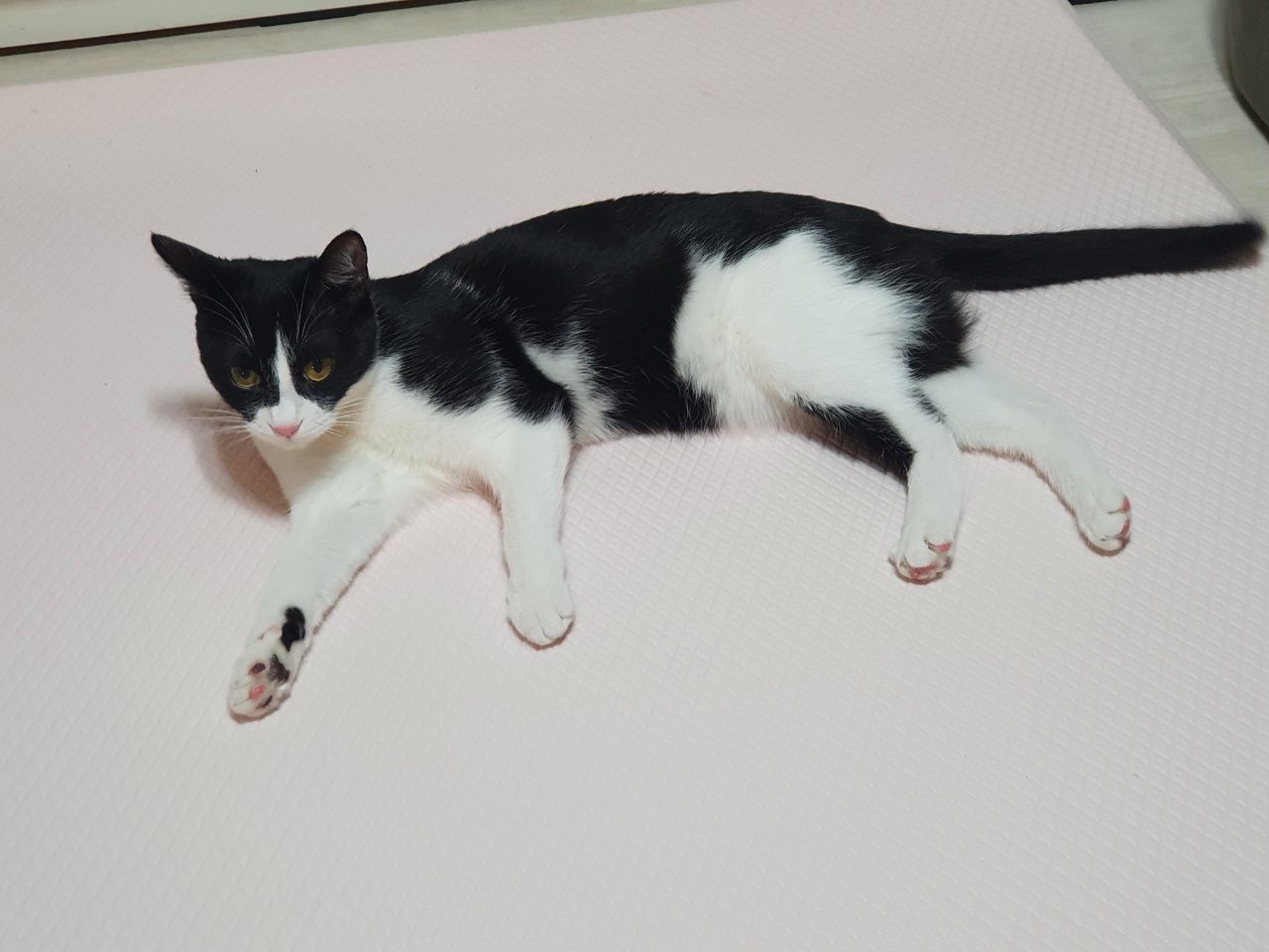 검정 배경보단 밝은 배경에서 찍으면 턱시도 무늬가 선명하게 보여요.